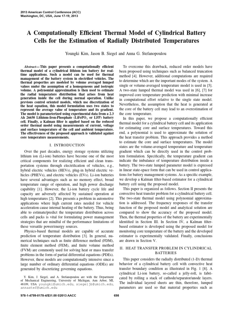 Y. Kim, J. Siegel, and A. Stefanopoulou are with the Department cated by rolling a stack of cathode/separator/anode layers.