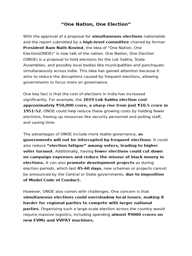 Election(ONOE)" is now talk of the nation. One Nation, One Election