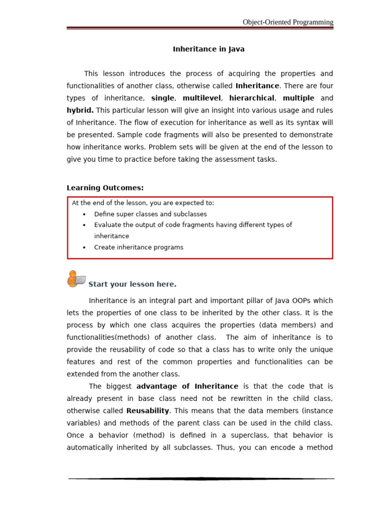 how inheritance works. Problem sets will be given at the end of the lesson to