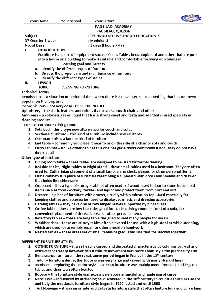 TOPIC: CLEANING FURNITURE