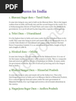 LIST OF IMPORTANT DAMS IN INDIA