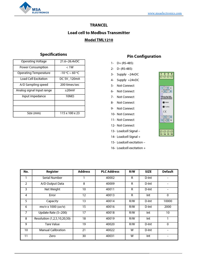 Load Cell Excitation DC 5V , 120mA 4- Supply +24vDC