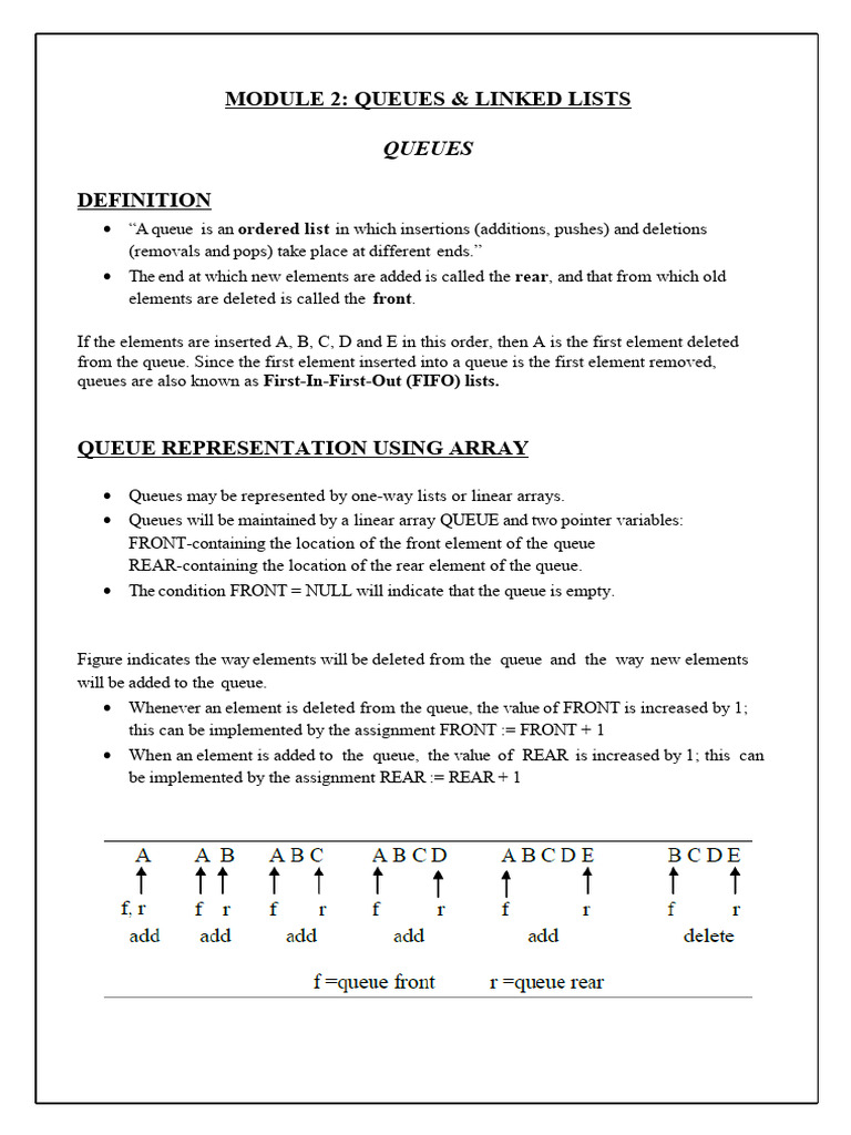 “A queue is an ordered list in which insertions (additions, pushes) and deletions