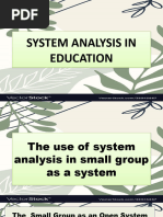 • analyze the components and principles underlying small group as an open system