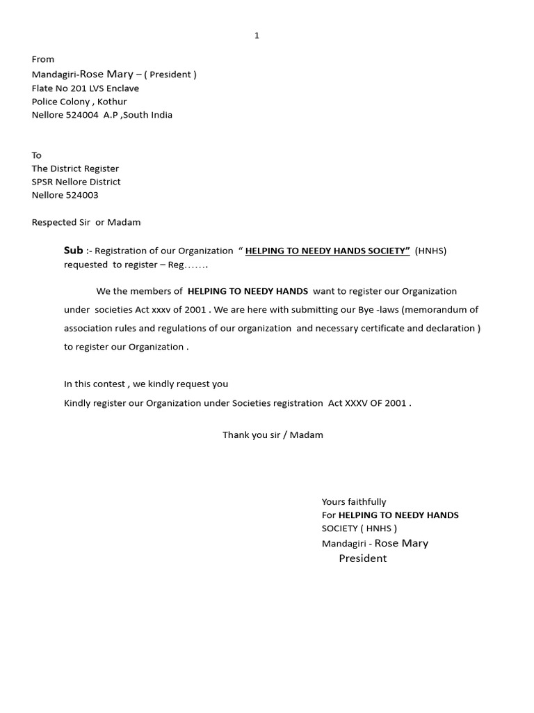 Sub :- Registration of our Organization “ HELPING TO NEEDY HANDS SOCIETY” (HNHS)