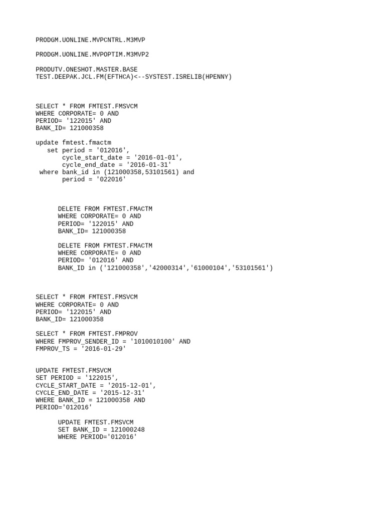 UPDATE FMTEST.FMSVCM