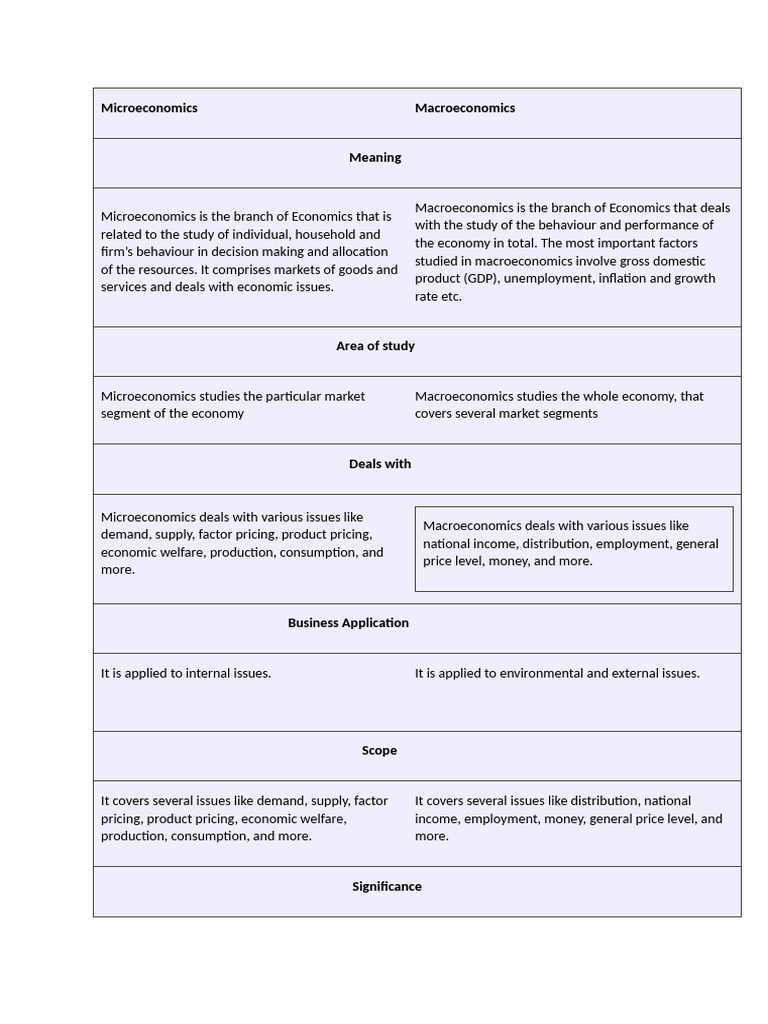 Microeconomics studies the particular market Macroeconomics studies the whole economy, that