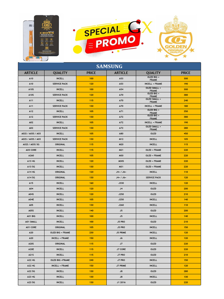 A22 4G INCELL + FRAME 150 J7 PRIME INCELL 120