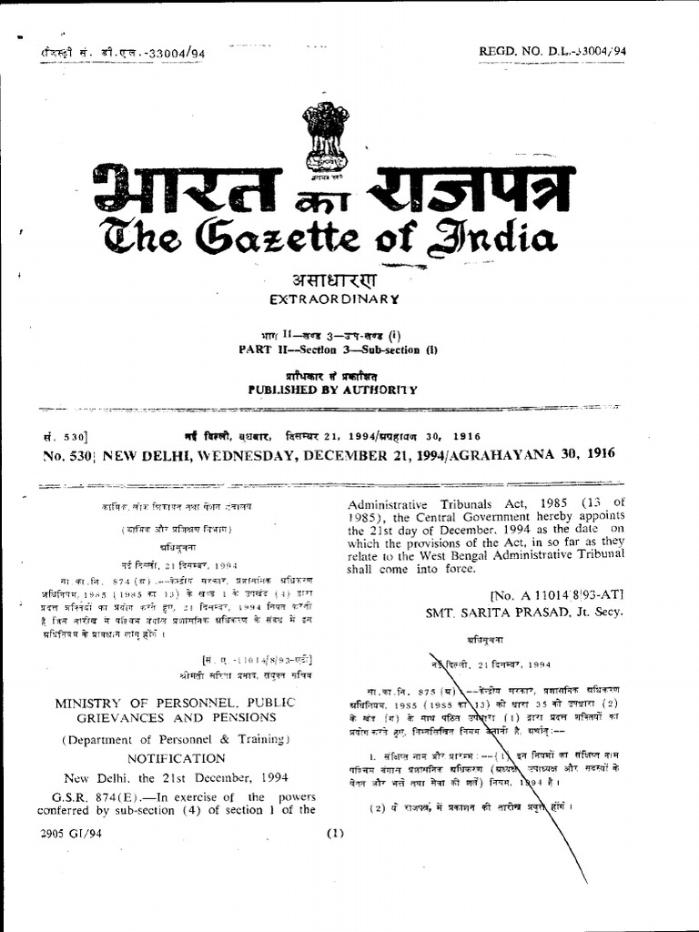 IN THE WEST BENGAL ADMINISTRATIVE TRIBUNAL