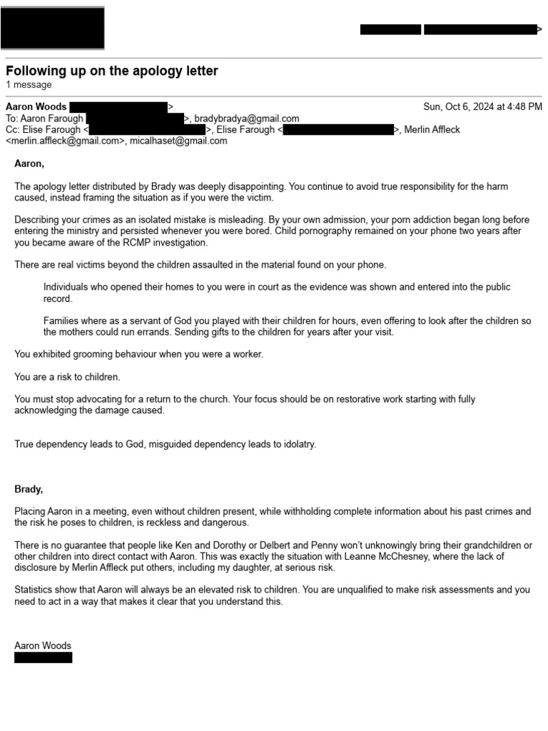 The apology letter distributed by Brady was deeply disappointing. You continue to avoid true responsibility for the harm