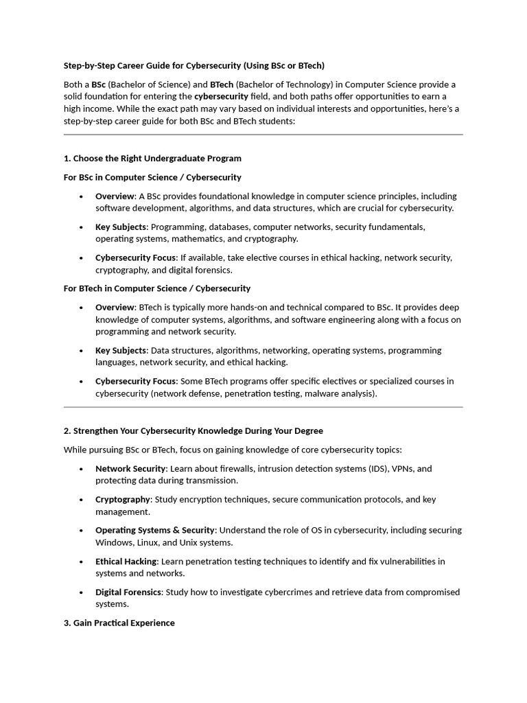 Step-by-Step Career Guide for Cybersecurity (Using BSc or BTech)