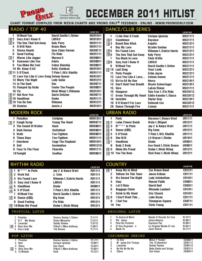 CHART FORMAT COMPILED FROM MEDIA CHARTS AND PROMO ONLY FEEDBACK - ONLINE - [Link]