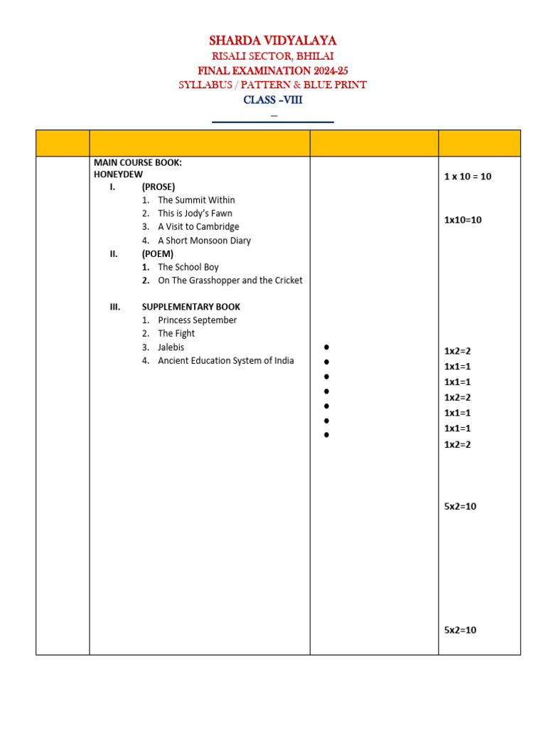 [Link]. Subject Syllabus Pattern MXQ