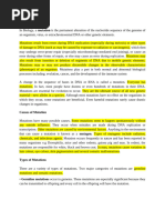 Mutations are changes in the sequence of nucleotides in DNA molecules. Types of