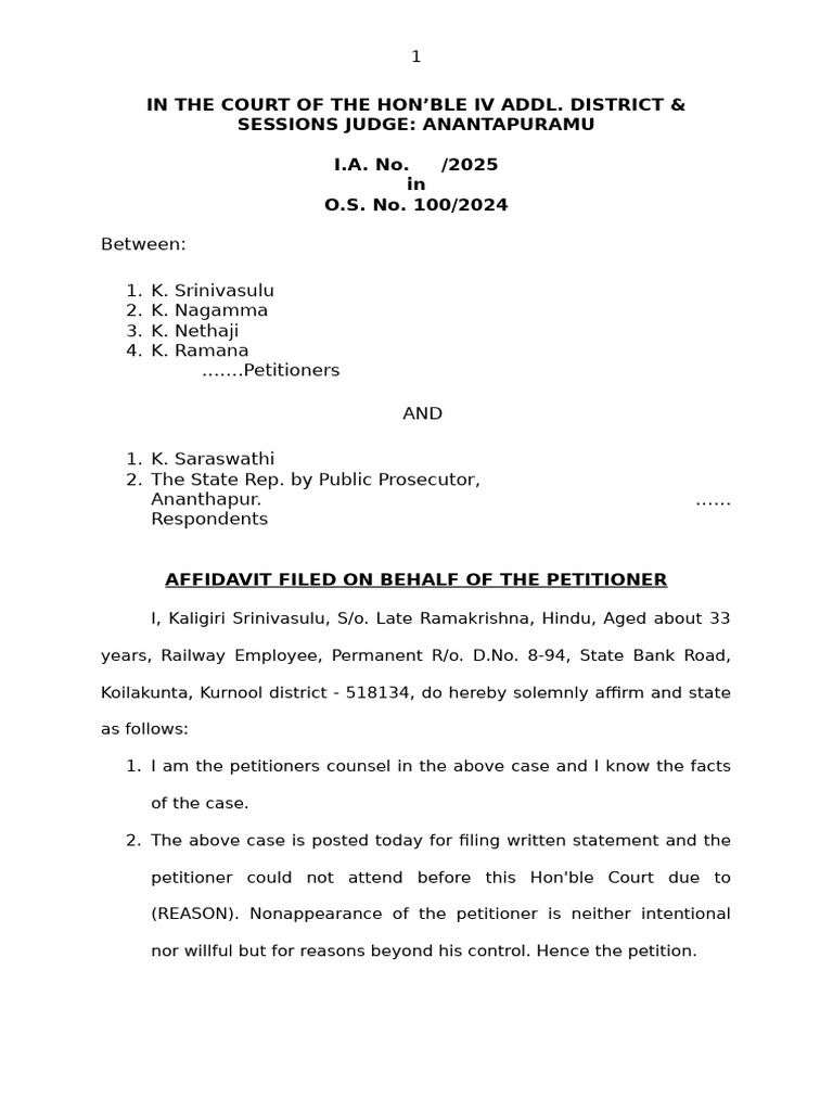 I, Kaligiri Srinivasulu, S/o. Late Ramakrishna, Hindu, Aged about 33