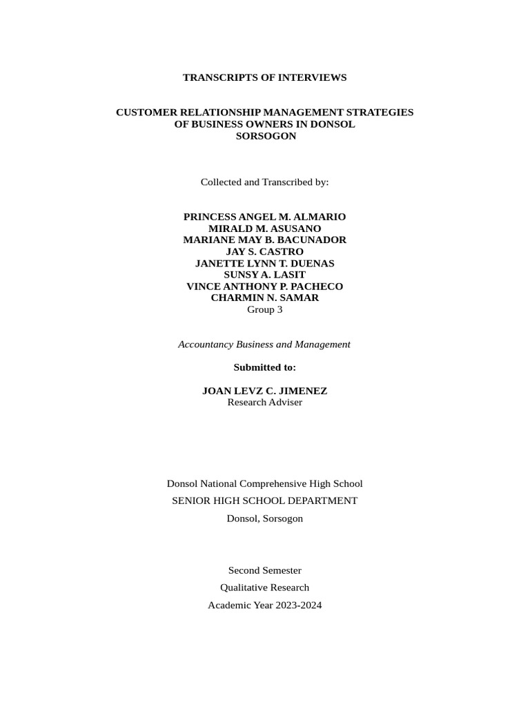 tungkol sa customer relationship tas sa business owner po. Ning kung... gusto,