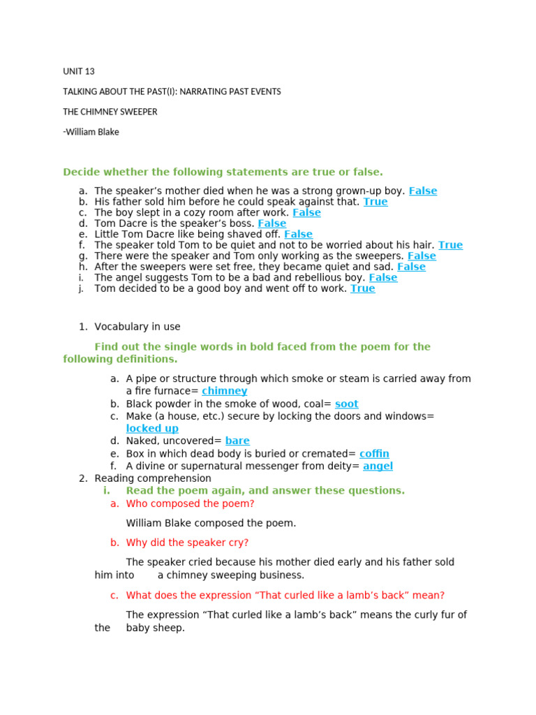 chimney sweepers all locked in black coffins. An angel arrives with a special