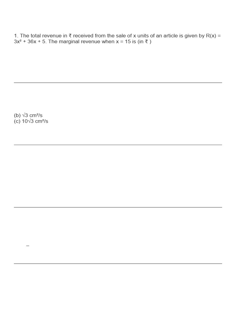 1. The total revenue in ₹ received from the sale of x units of an article is given by R(x) =