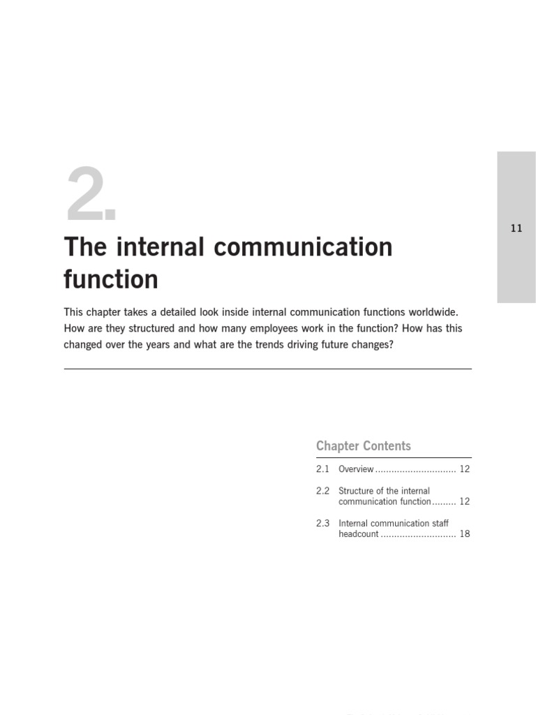 This chapter takes a detailed look inside internal communication functions worldwide.