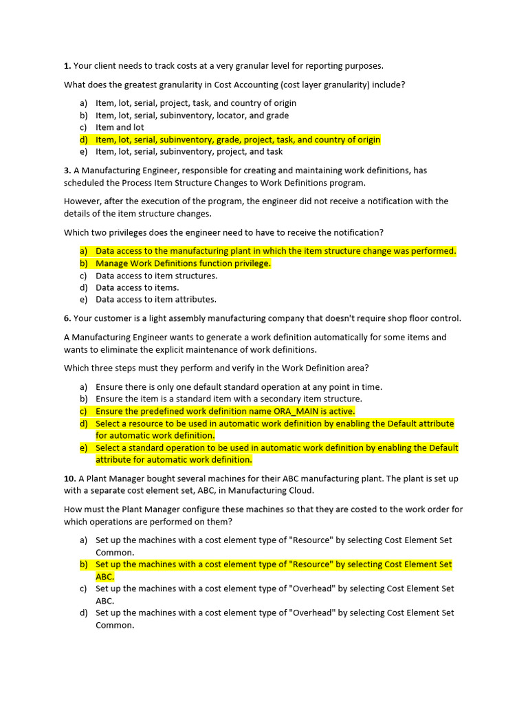 3. A Manufacturing Engineer, responsible for creating and maintaining work definitions, has