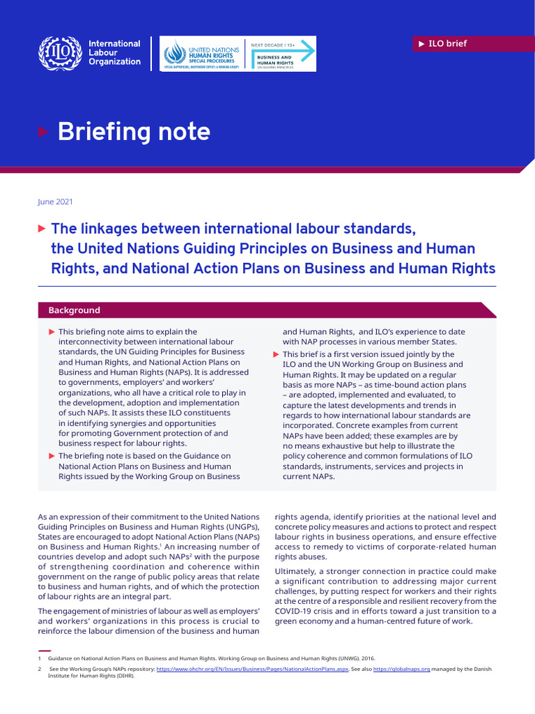 X This briefing note aims to explain the and Human Rights, and ILO’s experience to date