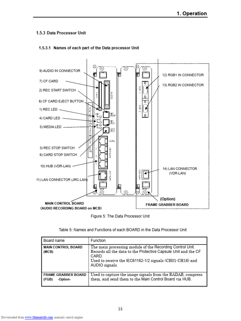Table 5: Names and Functions of each BOARD in the Data Processor Unit