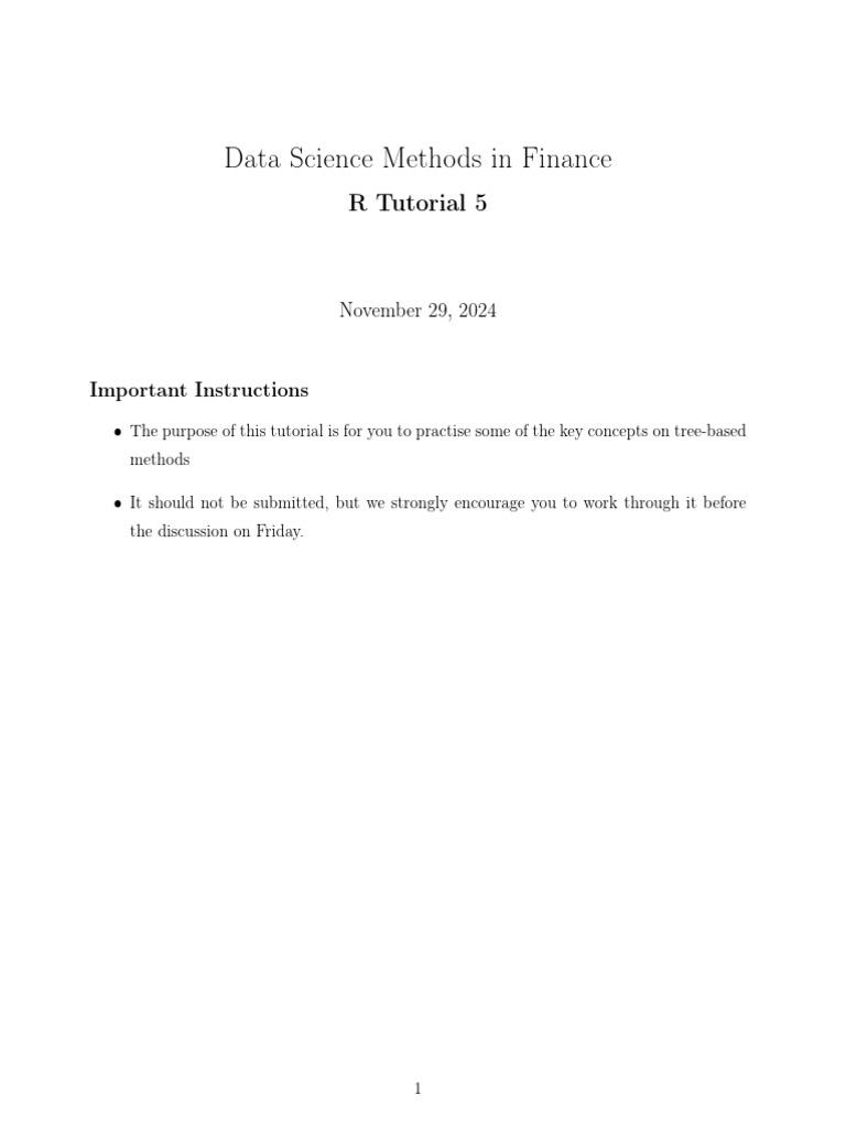 • The purpose of this tutorial is for you to practise some of the key concepts on tree-based