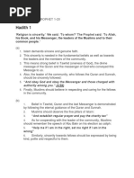 Section No 5. Major teachings of the Hadiths (1-20) of the Prophet: Four passages are set