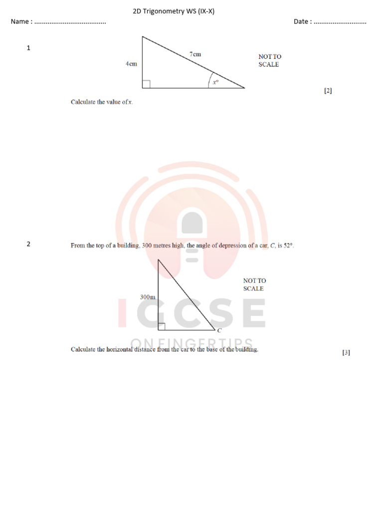 2D Trigonometry WS (IX-X)