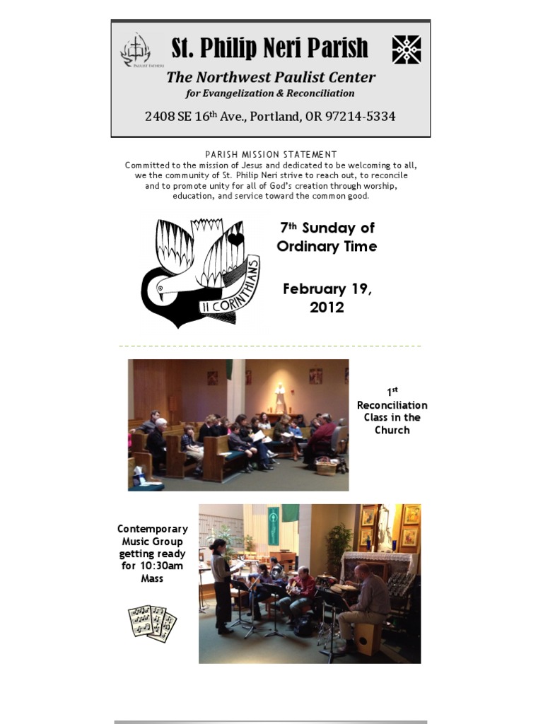 PARISH MISSION STATEMENT Committed to the mission of Jesus and dedicated to be welcoming to all, we the community of St. Philip Neri strive to reach out, to reconcile and to promote unity for all of Gods creation through worship, education, and service toward the common good.
