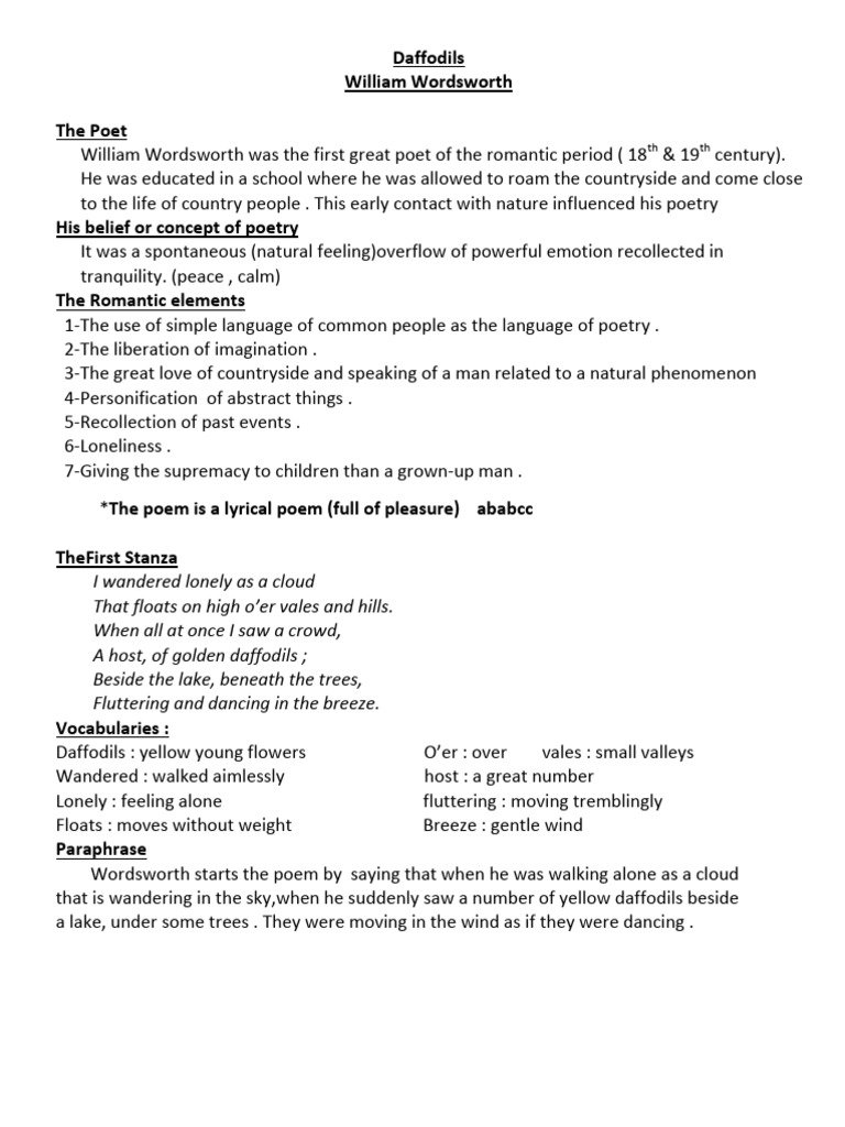 1- Simile: Daffodils as stars / wandered lonely as a cloud