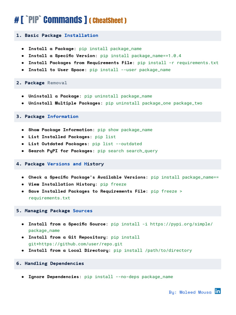 ● Install from a Specific Source: pip install -i https://pypi.org/simple/