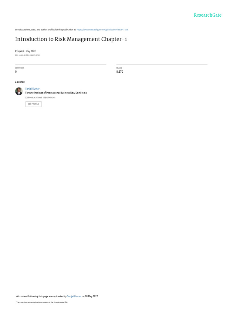 Sonjai Kuma, PhD Scholar in Enterprise Risk Management at Fortune Institute of International Business (FIIB), New Delhi, 2022