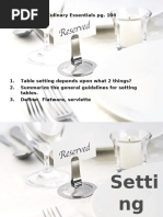 settings. Utensils are arranged in the order and according to the manner in which the diner will use