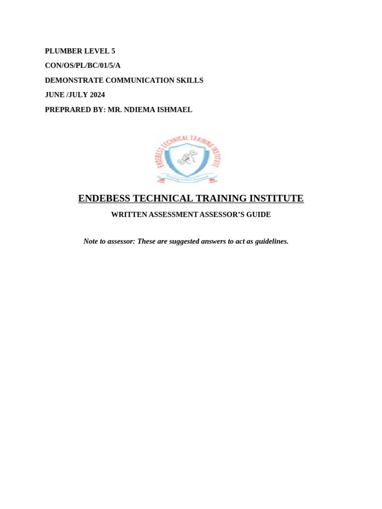 WRITTEN ASSESSMENT ASSESSOR’S GUIDE