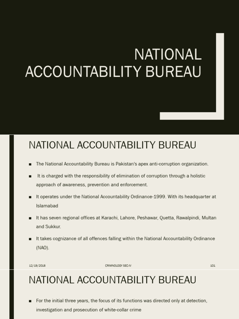■ The National Accountability Bureau is Pakistan's apex anti-corruption organization.