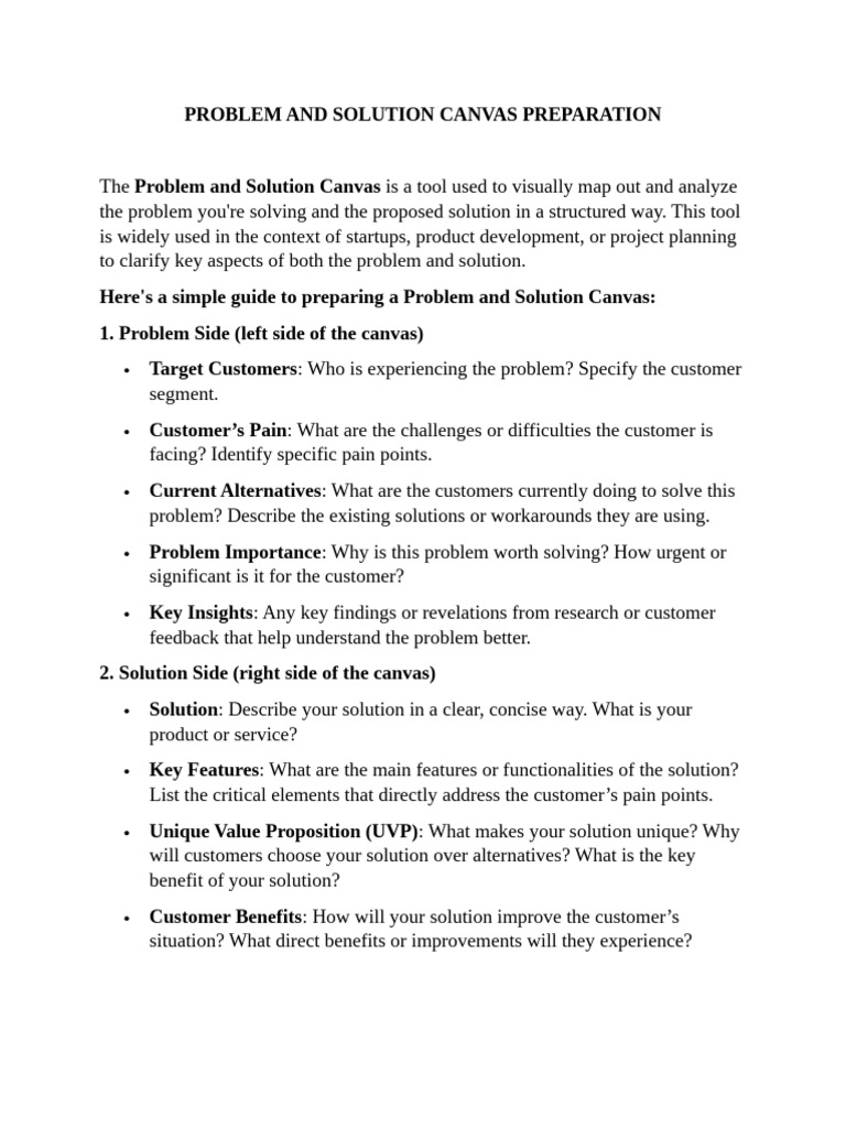 Here's a simple guide to preparing a Problem and Solution Canvas: