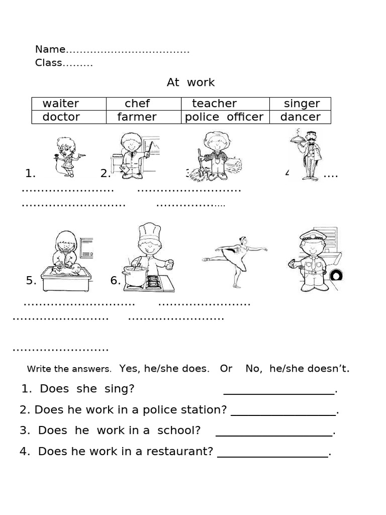 Write the answers. Yes, he/she does. Or No, he/she doesn’t.