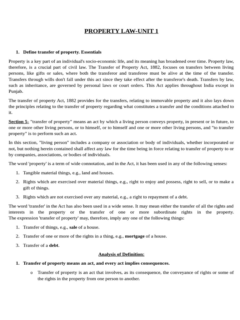 given a wider meaning. Property law is therefore an important branch of civil law. The Transfer of Property Act, 1882 deals