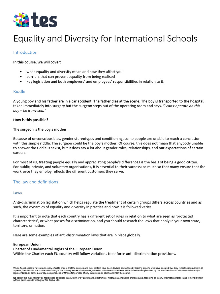 Equality and Diversity for International Schools