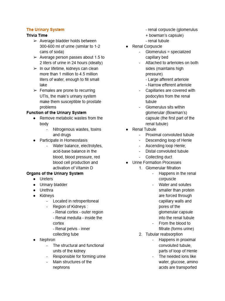- Nitrogenous wastes, toxins ● Renal Tubule