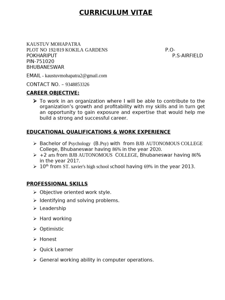 Bachelor of Psychology ([Link]) with from BJB AUTONOMOUS COLLEGE