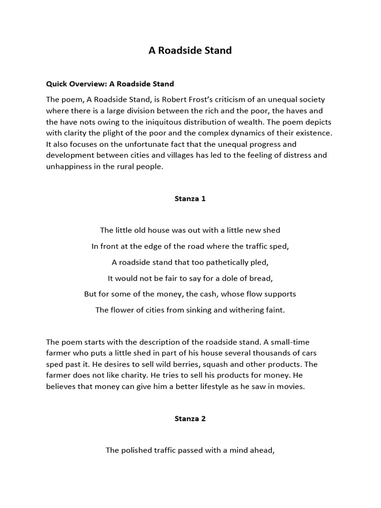 The poem starts with the description of the roadside stand. A small-time