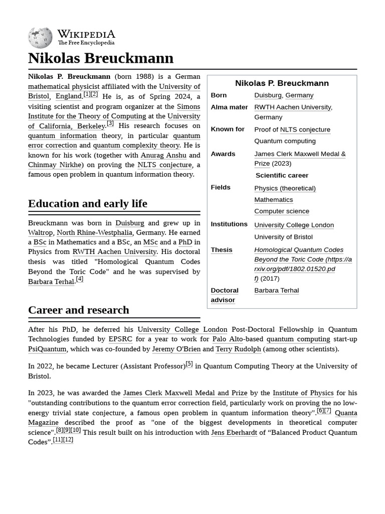 1. "Dr Nikolas Breuckmann - Our People" (https://www.bristol.ac.uk/people). www.bristol.ac.uk.
