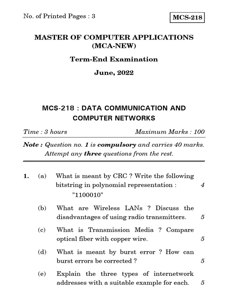 MCS-218 : DATA COMMUNICATION AND