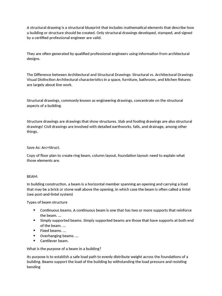 Structural drawings, commonly known as engineering drawings, concentrate on the structural