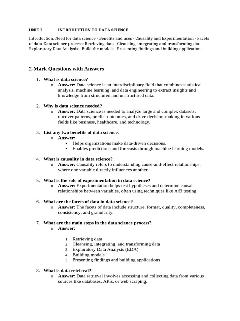 o Answer: Data science is an interdisciplinary field that combines statistical