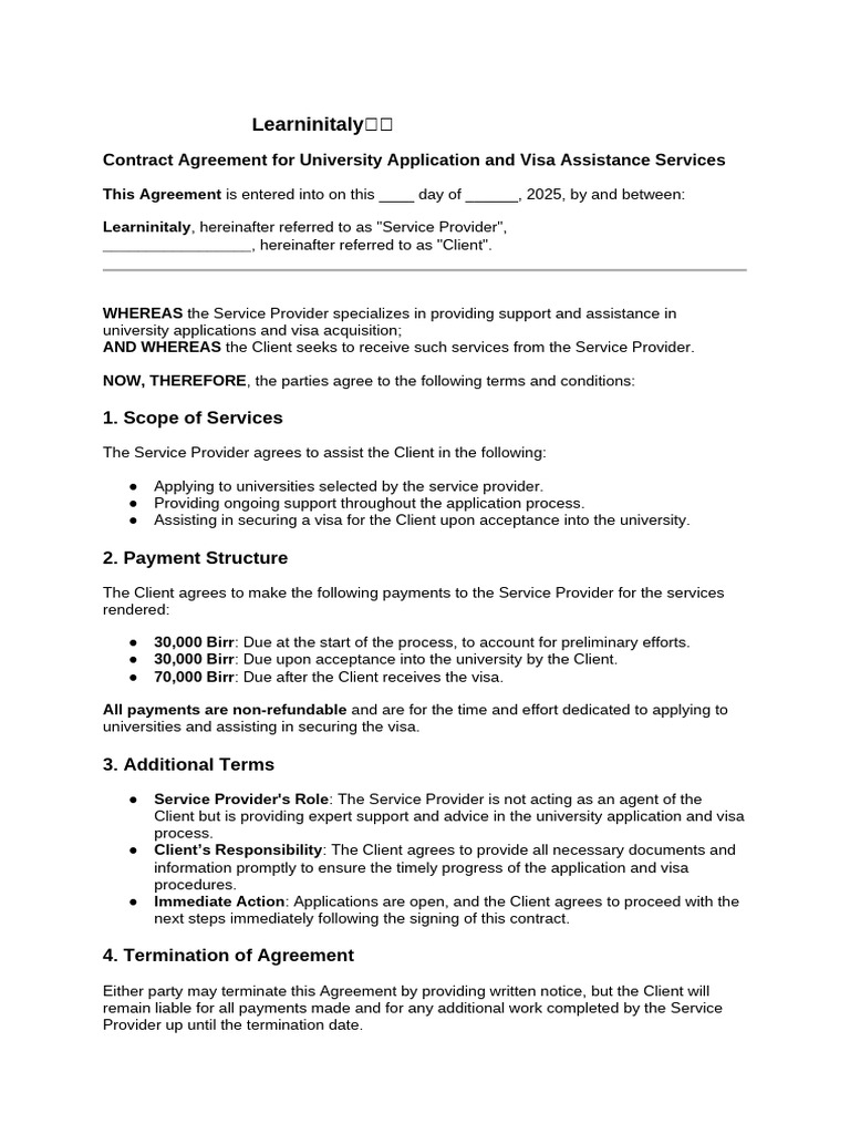 Contract Agreement for University Application and Visa Assistance Services