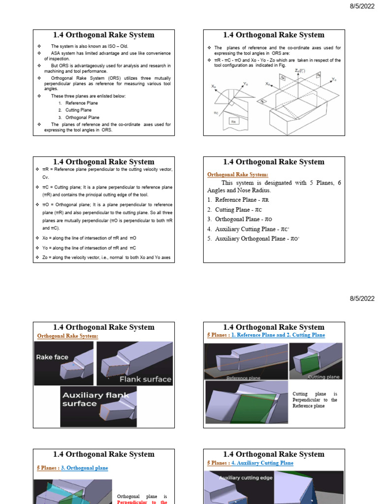 Orthogonal Rake System: 5 Planes : 1. Reference Plane and 2. Cutting Plane