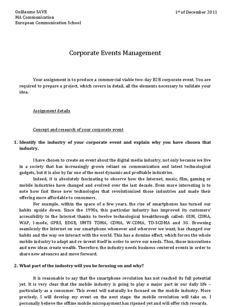 Corporate Events Management Assignment - Guillaume Save (European NFC Summit 2012)